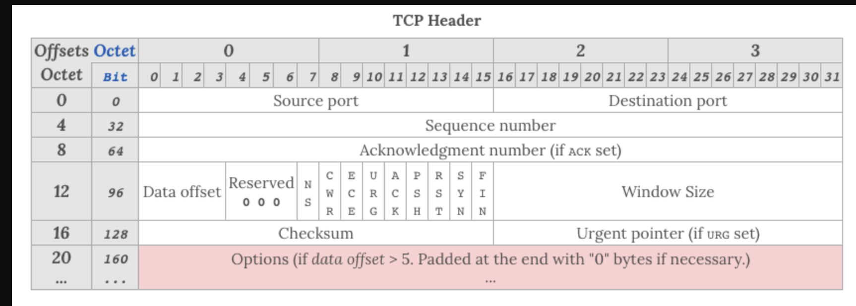 • ACK=1:该字段为一表示确认号字段有效。此外,TCP 还规定在连接建立后传送的所有报文段都必须把 ACK 置为一 PSH=1:该字段为一表示接收端应该立即将数据 push 给应用层,而不是等到缓冲区满后再提交。