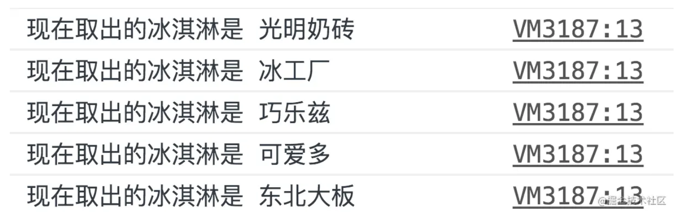 丢到控制台运行,冰淇淋就会按照后进先出的顺序被取出: