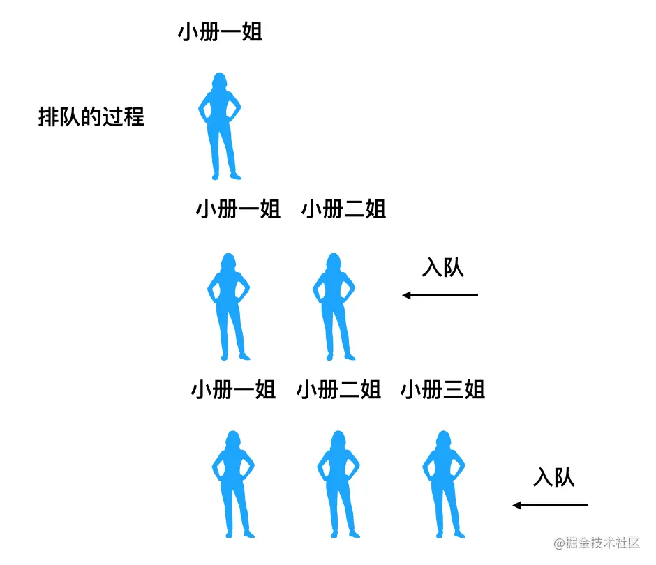下面我们基于数组来实现一波队列的常用操作,完成“小册姐排队”和“小册姐取餐”的过程: