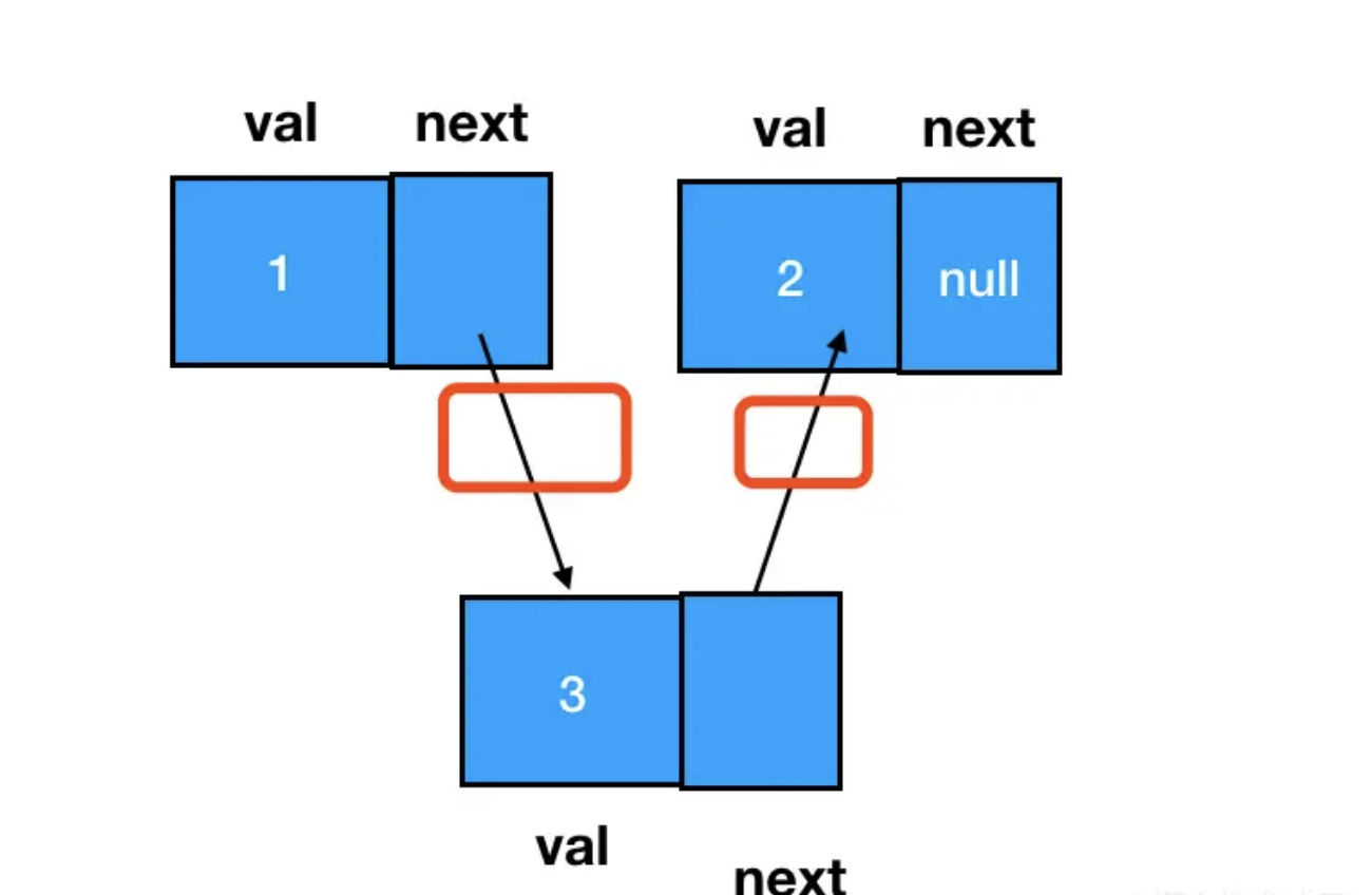 // 把node3的 next 指针指向 node2(即 node1.next)