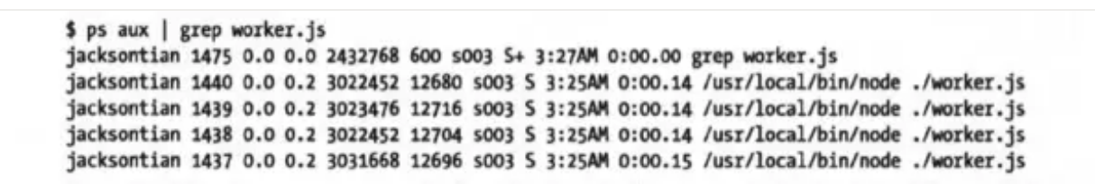 在 linux 中,我们通过 ps aux | grep worker.js 查看进程