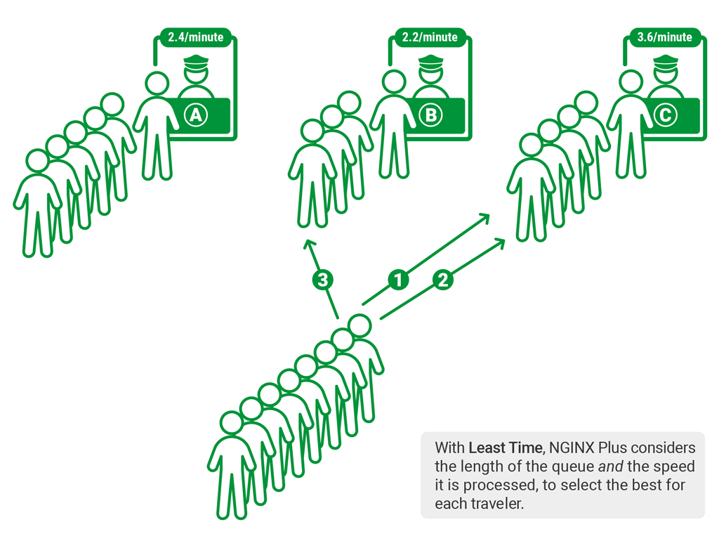 依赖于NGINX Plus,优先分配给响应时间最短的服务器。