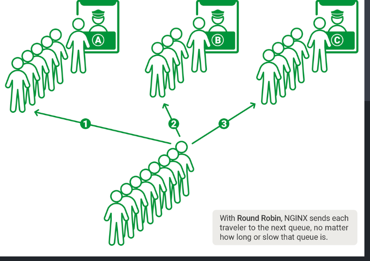 默认情况下采用的策略,将所有客户端请求轮询分配给服务端。这种策略是可以正常工作的,但是如果其中某一台服务器压力太大,出现延迟,会影响所有分配在这台服务器下的用户。