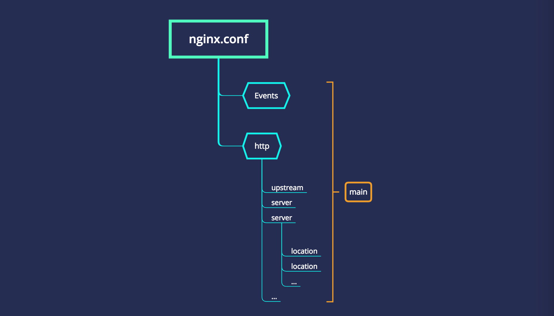 :可以嵌套多个server,配置代理,缓存,日志定义等绝大多数功能和第三方模块的配置。server