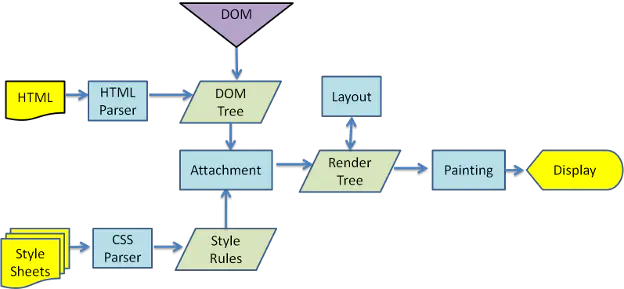 浏览器的解析过程:浏览器文档流 -> html DOM结构 --> CSS结合 --> 布局 --> 绘制页面。