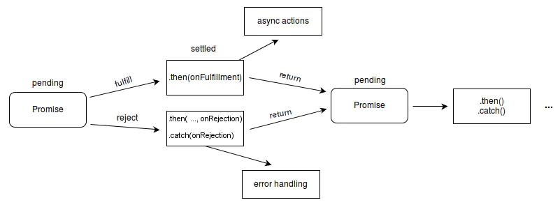 Promise 内部进行 等待态(Pending)执行态(Fulfilled)拒绝态(Rejected) 的状态流转。