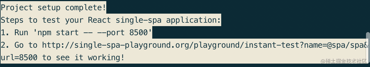 这一步演示了如何去创建一个 single-spa 应用程序,由于 single-spa 应用程序没有自己的HTML文件,因此它们不能作为独立应用程序运行。相反,它们会生成可动态注入HTML文件的javascript和CSS。Single-spa playground 允许您动态地将JavaScript和CSS注入其中,以便您可以测试应用程序