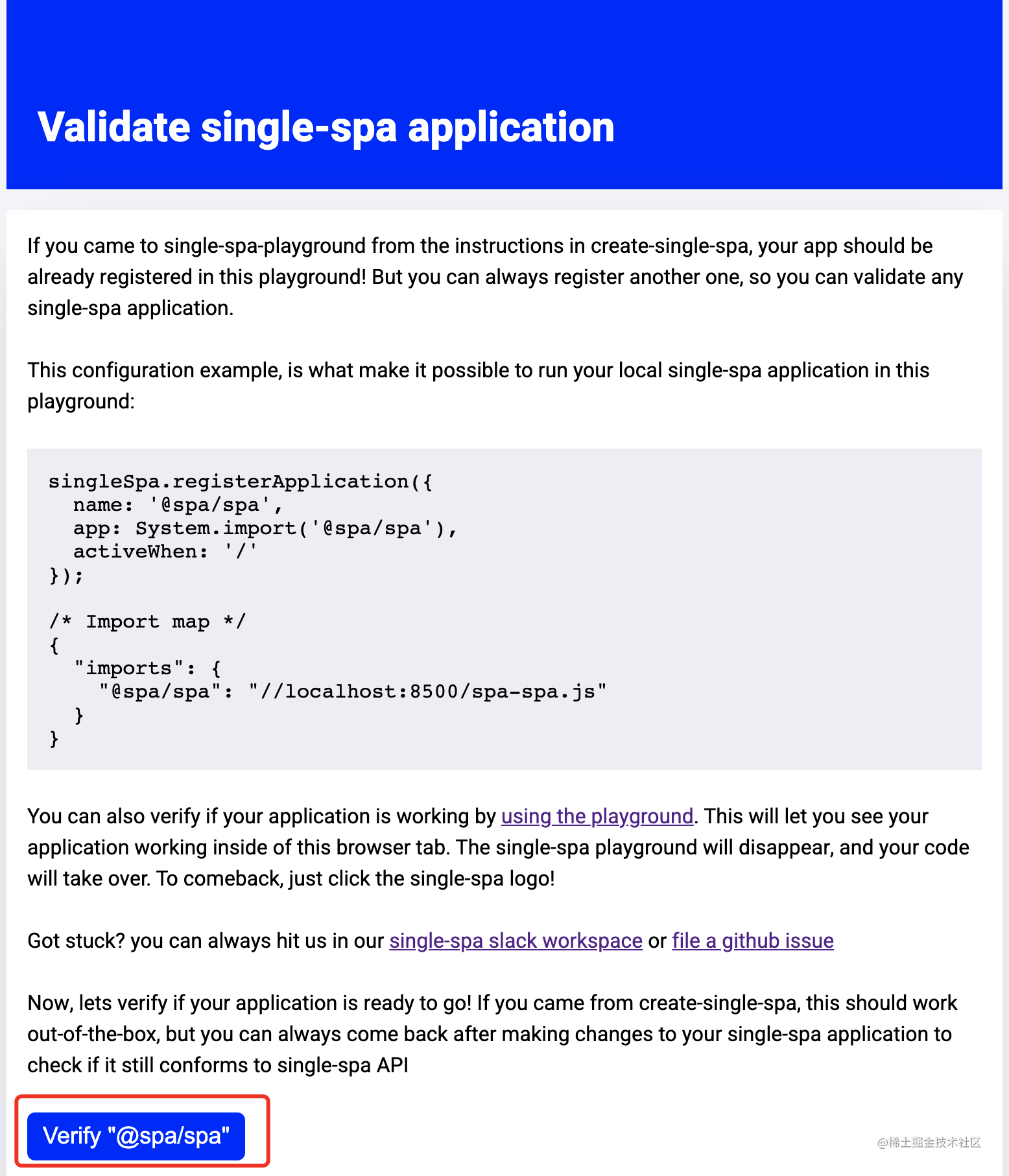 这里就是 single-spa 给大家留的搜索问题和解决问题的入口:
