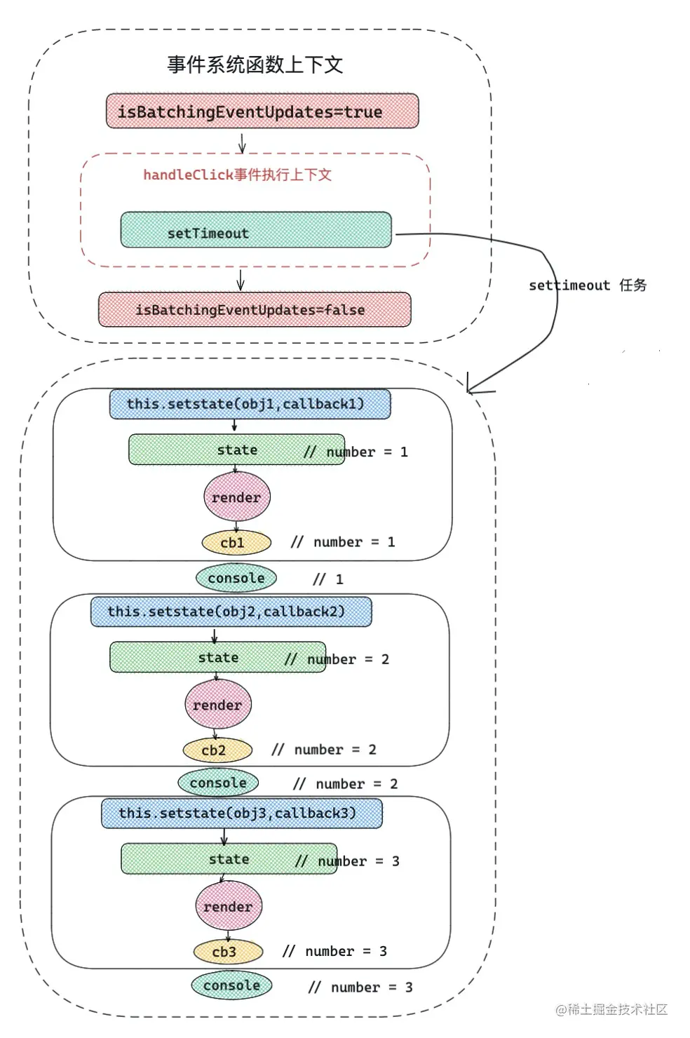 ()=>{ console.log(this.state.number) },到此为止完成了一次 setState 全过程。