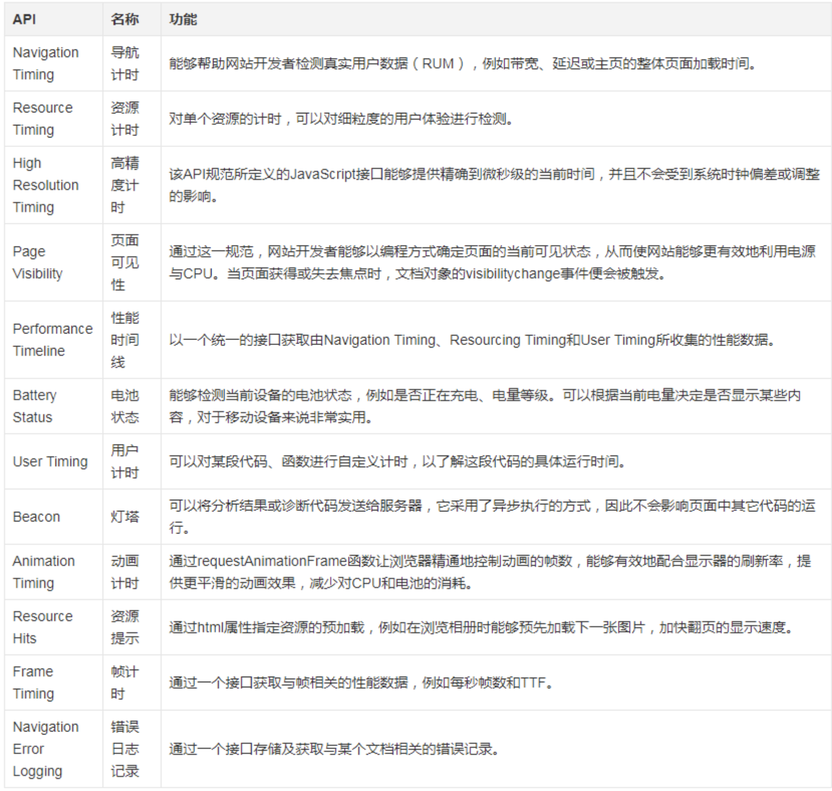 Frame Timing API是Web Performance Timing API标准中的其中一位成员。Web Performance Timing API是 W3C 推出的一套性能 API 标准,用于帮助开发者对网站各方面的性能进行精确的分析与控制,提升 Web 网站性能