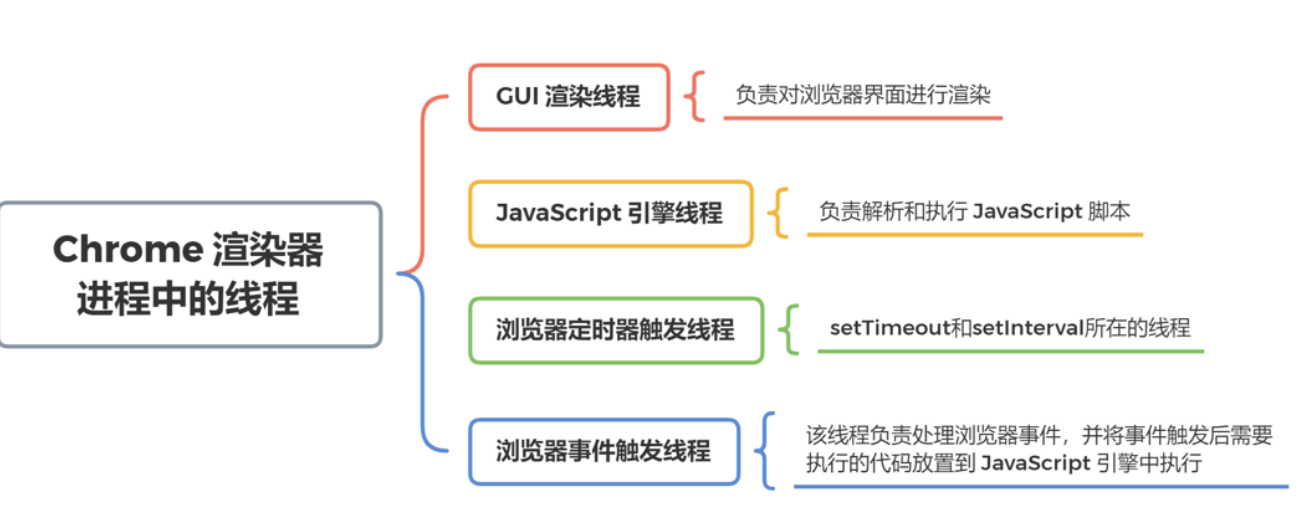 <script>和<style>元素设计不合理会影响页面加载速度; - 在 UI 线程、网络线程、存储线程、浏览器事件触发线程、浏览器定时器触发线程中,I/O 事件通过异步任务完成时触发的函数回调,解决了单线程的 Javascript 阻塞问题。