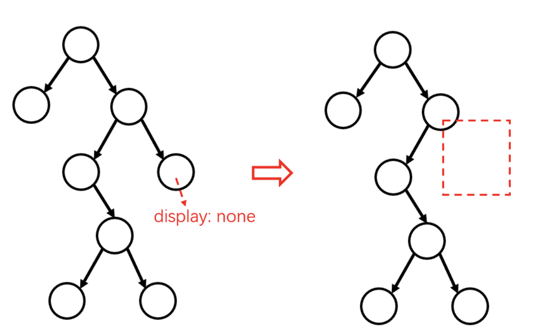 在这个过程中,像header或display:none的元素,它们会存在 DOM 节点树中,但不会被添加到渲染树里。