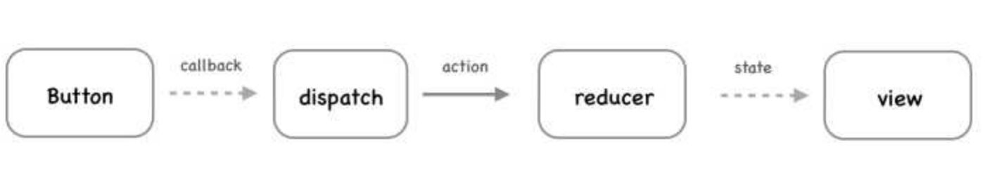 redux中一个简单的同步数据流动的场景,点击button后,在回调中dispatch一个action,reducer收到action后,更新state并通知view重新渲染