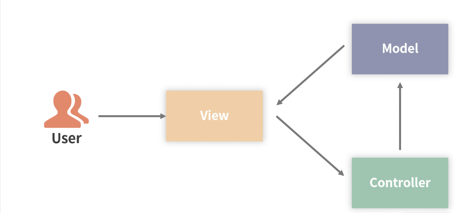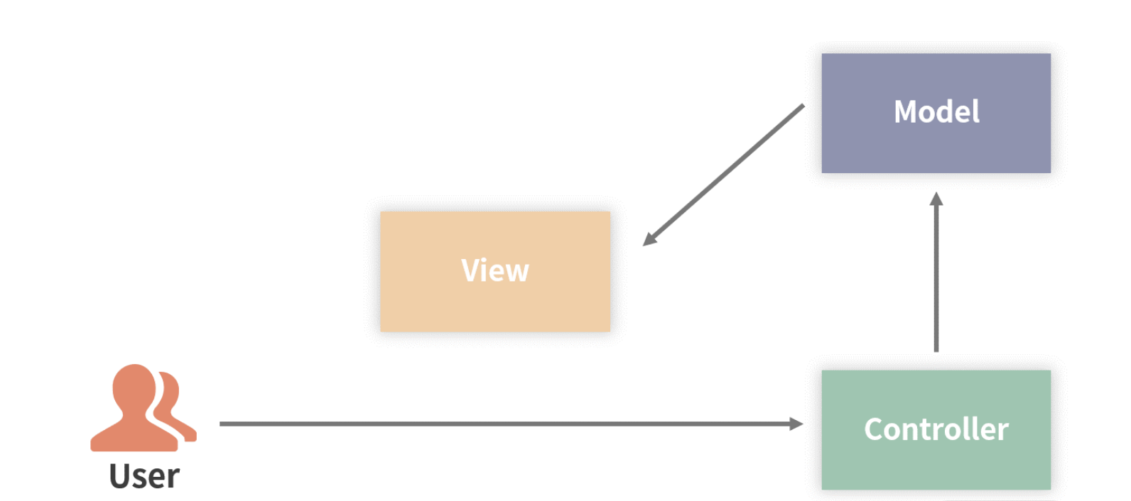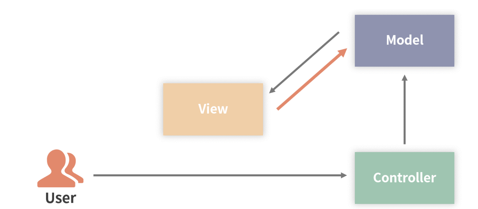 原则上来说,三者的关系应该像上图一样,用户操作 View 后,由 Controller 来处理逻辑(或者直接触发 Controller 的逻辑),经过 Controller 将改变应用到 Model 中,最终再反馈到 View 上。在这个过程中,数据流应该是单向的。