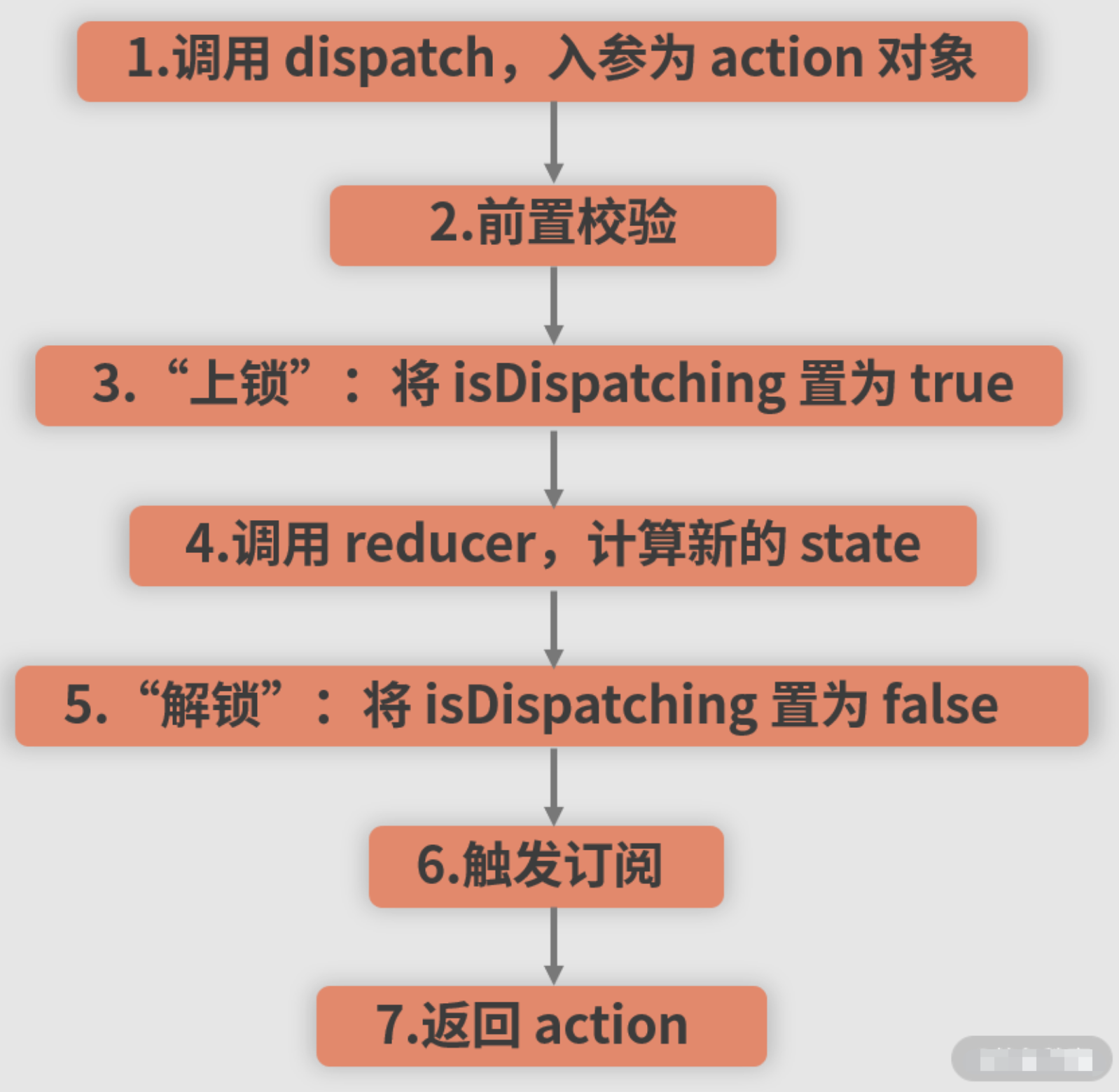 在调用 reducer 之前,Redux 首先会将 isDispatching 变量置为 true,待 reducer 执行完毕后,再将 isDispatching 变量置为 false