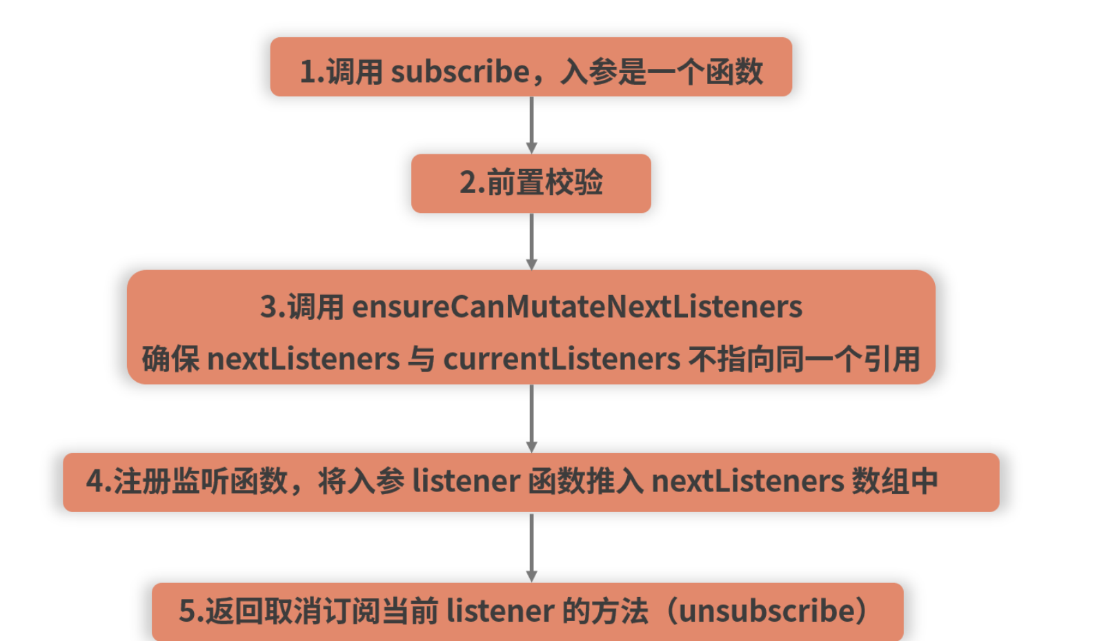 结合这段源码,我们可以将 subscribe 的工作流程提取如下: