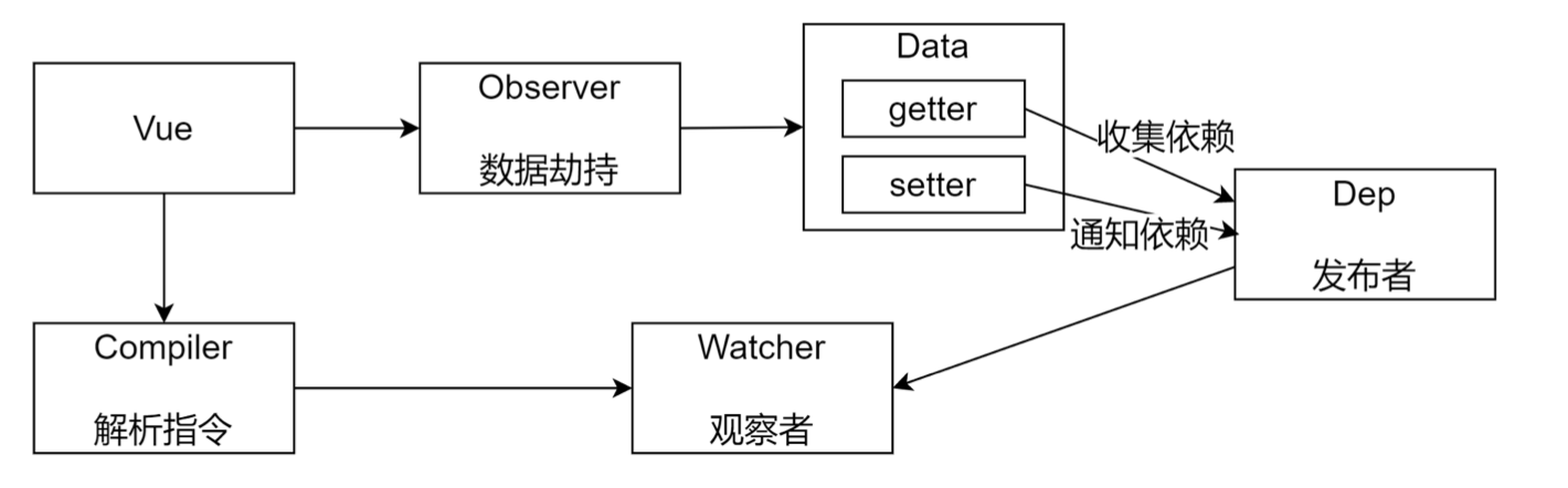 // 数据劫持:当访问或者设置 vm 中的成员的时候,做一些干预操作
